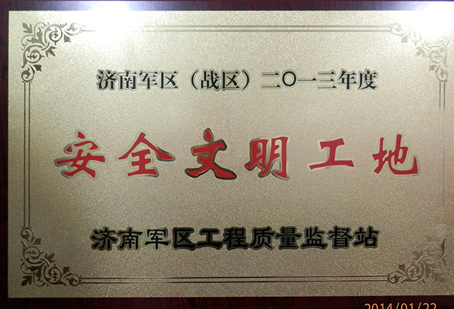 濟空千佛山大廈工程榮獲“濟南軍區二0一三年度安全文明工地”