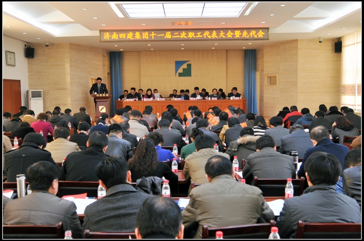 2月15日,集團公司第十一屆二次職代會暨2013年度先代會在集團公司三樓西會議室勝利召開。集團領導班子成員,來自集團各個工作崗位的139名職工代表及20名勞模和11個優秀班組代表參加會議。山東省建設工會主席冷相明,市總工會副主席肖勇,國資委工會主席李傳鳳等領導應邀出席會議。會議由集團公司黨委副書記李力主持。