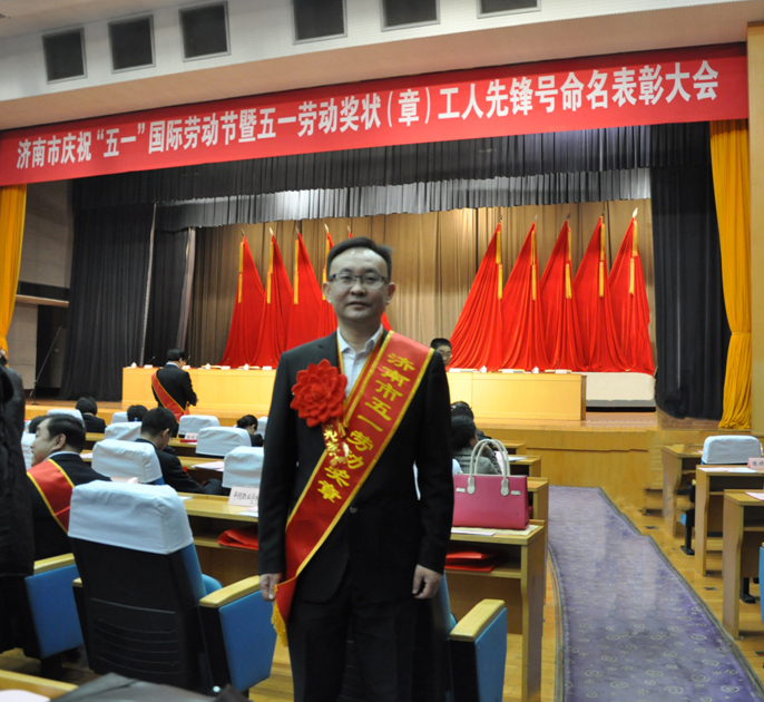 濟南市慶祝“五一”國際勞動節暨五一勞動獎狀(章)工人先鋒號命名表彰大會于2014年4月24日上午9:00在濟南舜耕國際會展中心禮堂隆重召開。濟南市委、市政府等主要領導及受表彰的先進集體代表和先進個人等500余人參加了會議。我集團公司安裝工程總公司經理葛軍獲得濟南市“五一”勞動獎章,受到大會表彰。