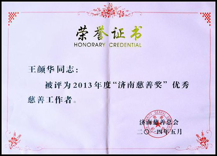 會上,濟南慈善總會對2013年度濟南慈善工作先進單位和先進個人進行了表彰。集團公司榮獲“2013年度愛心捐贈企業”、“2013年度先進慈善工作站”稱號,王顏華同志榮獲“2013年度優秀慈善工作者”稱號。