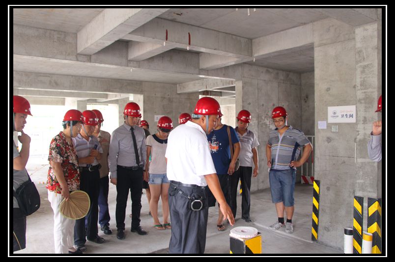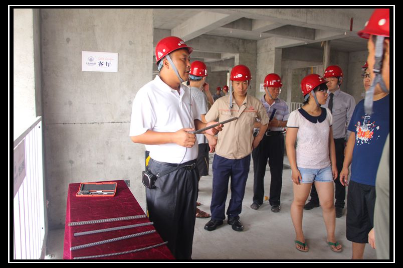 活動現場,首先參觀的是金海花園的工法樣板間。作為濟陽當地房地產市場上首個推出的工法樣板間,不但集中展示了項目先進的施工工藝和優質的施工材料,更加體現出公司在技術、質量上的領先和自信,在廣大客戶中間引起了強烈反響。隨后,由專業工程師和置業顧問分批次帶領客戶在施工現場進行了講解參觀。一路走來,現場的安全文明、施工質量和規范的場區秩序,以及樣板層整潔光亮的墻體混凝土、規范的自檢報告、衛生間及陽臺的管路預埋、樓體內的各種防護措施等等,讓廣大客戶對公司的精益化管理和人性化服務有了更加深入的理解。