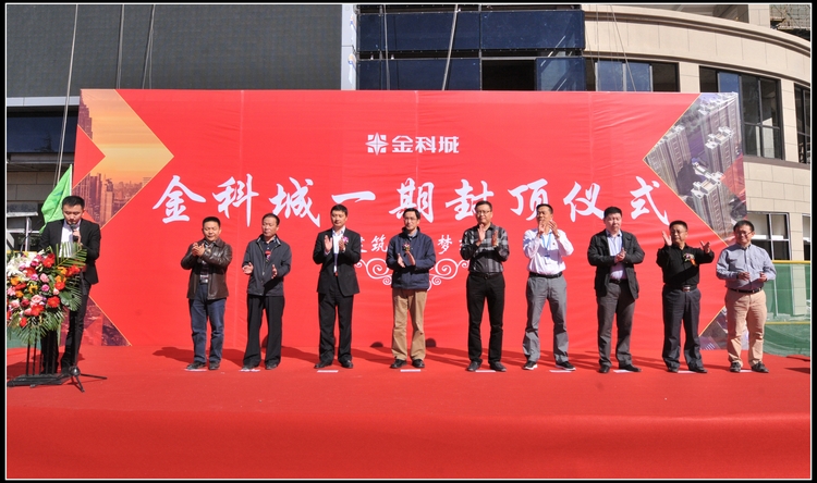 10月16日,陽光明媚、秋高氣爽,濟南市迎來難得好天氣。上午10:18分,由集團公司417項目部承建的金科城工程在項目現場舉行了隆重而熱烈的主體封頂儀式。集團公司董事長、黨委書記、總經理曹曉巖,副總工程師、施工處處長王珉,金科地產山東公司董事長李大偉,及建設單位、監理單位、施工單位代表出席了慶典儀式。