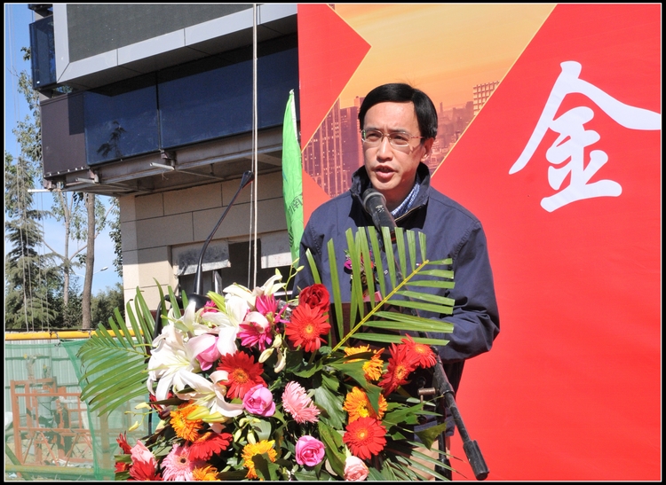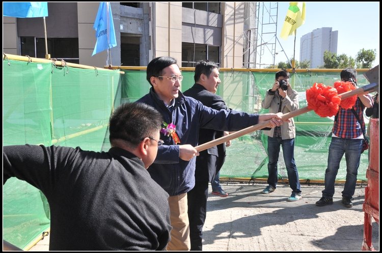 封頂儀式上,金科地產山東公司董事長李大偉代表金科地產做了講話,李董事長在講話中,高度評價了集團公司在金科城工程建設中發揮的標桿作用,對工程實體和四建品牌給予了充分肯定和認可,希望與四建集團進一步加強溝通、加深合作,在共贏的基礎上實現共同發展。曹曉巖董事長代表施工單位做了講話。董事長首先對417項目部承建的D地塊5#、8#樓主體順利封頂表示了衷心的祝賀,對奮戰在一線的工作人員表示慰問。董事長指出,417項目部在金科城項目中高標準、嚴要求,特別是在春節期間“大干40天,確保基礎完”和6月10日起掀起的“確保商業部分順利銷售”搶工高潮中,打出了四建集團“能打硬仗、善打硬仗”的品牌和精神。董事長要求,417項目部在以后的工作中要繼續發揚這種敢打敢拼的鐵軍風范,做到“趕進度、保質量、高標準”,服務好業主,服務好工程建設,爭取更大的業績。