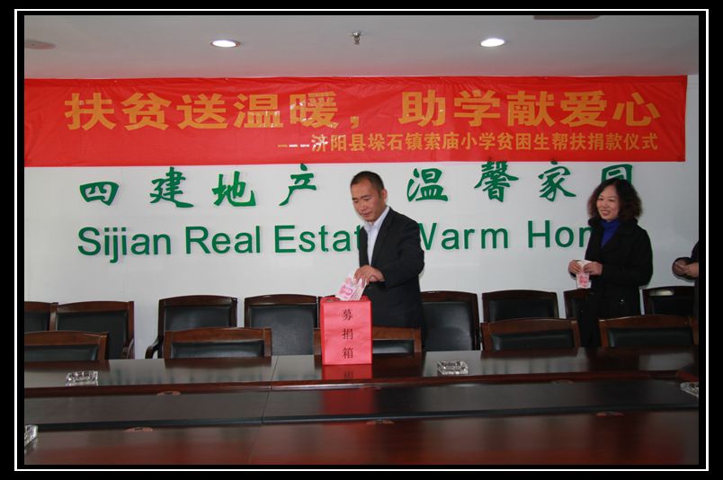 本次公益活動得到了四建地產徐總和集團團委張海書記的大力支持。在公益形式、救助對象的選擇上,徐總和張海書記親自溝通、落實方案。團支部則先后走訪、了解了柳埠、濟陽以及臨沂山區的多所學校,最終確定了以金海花園項目所在地的濟陽縣貧困學生為幫扶對象。活動的目的在于:一是幫扶貧困學生完成“求學夢”。二是要通過活動提升員工尤其是青年員工的擔當意識,加強青年員工對于清貧生活和現實困難的體驗,懂得感恩與付出。三是積極引導員工投身公益事業,傳遞正能量。四是弘揚企業文化,傳遞“愛心”地產的企業精神。