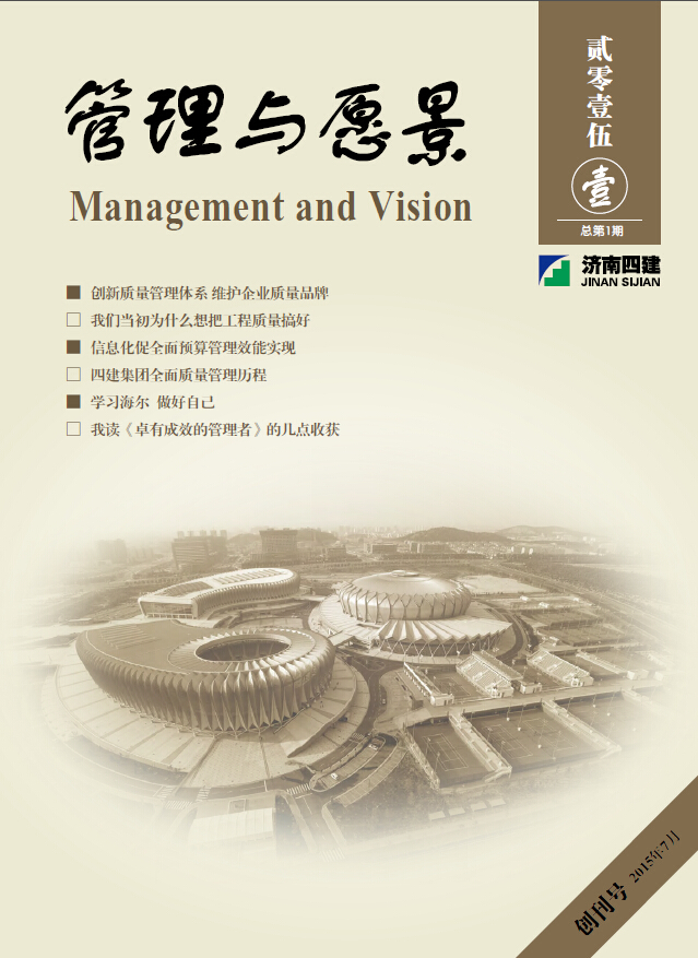 《管理與愿景》緊緊圍繞企業管理這一主題,針對經濟“新常態”下企業管理所面臨的任務和挑戰,以總結管理實踐,拓展管理視野,創新管理思路,提升管理手段為宗旨,涵蓋企業管理的高端論壇、焦點人物、行業前沿信息、管理經驗與感悟等內容,記錄下四建人管理實踐的探索足跡,向員工傳遞優秀管理的正能量,解讀管理本質,把握企業未來。