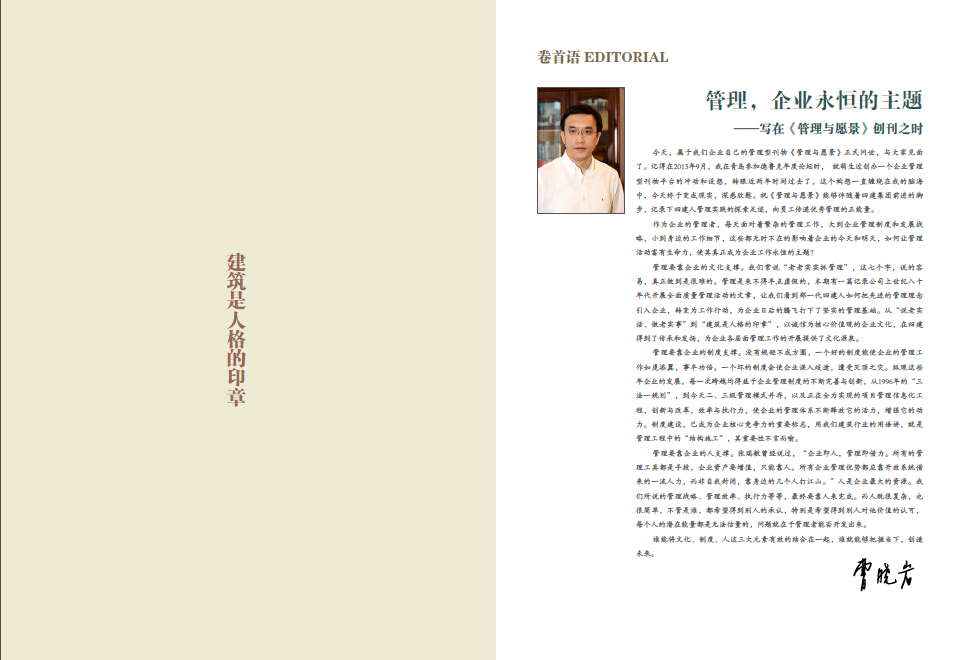 2015年7月,集團公司創建的管理型季度期刊《管理與愿景》創刊號順利刊印發行。