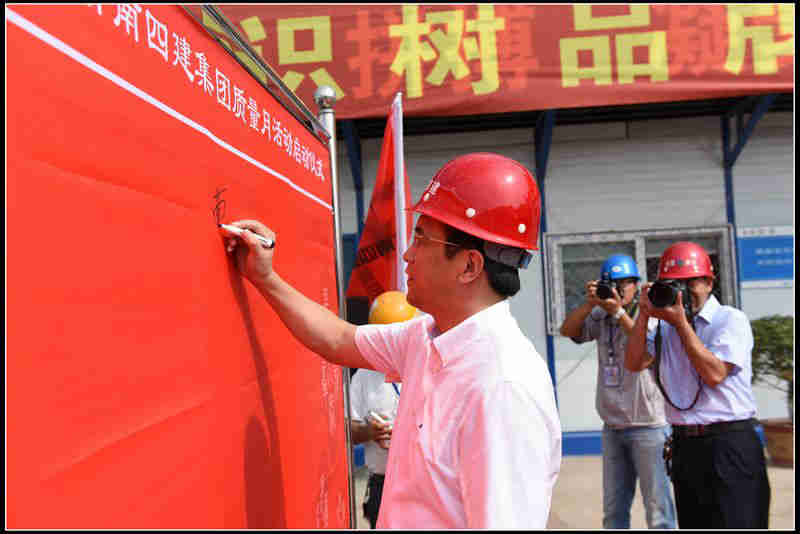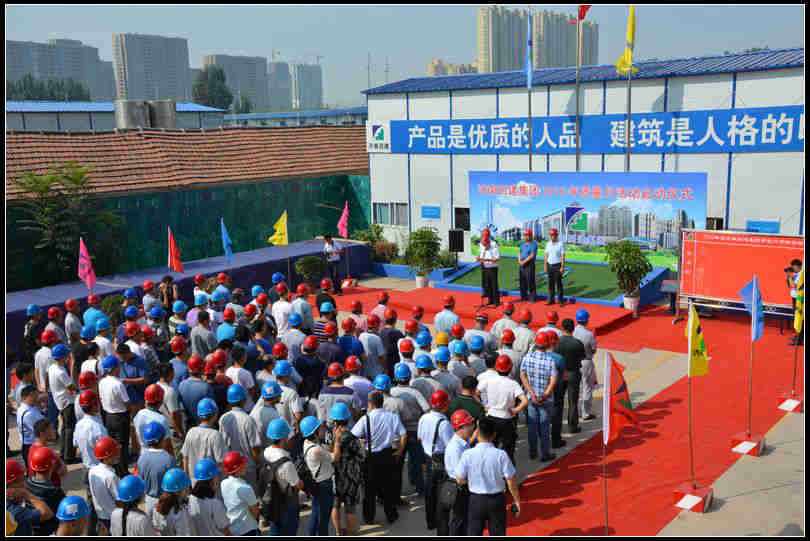 按照集團公司總體部署,落實董事長在2016年質量工作會議上提出的“提升質量意識樹品牌,弘揚工匠精神促管理”的講話精神,按照總經理在2016年上半年經濟工作分析會上提出的“扎實開展9月份的“質量月”活動”的要求。9月6日集團公司舉辦了以“弘揚“工匠精神” 提升質量管理意識”為主題的“質量月”活動啟動儀式及質量觀摩活動。啟動儀式在408項目部承建的萬科新里程2.2項目舉行。集團公司董事長、黨委書記曹曉巖,總經理李力,副總經理詹偉參加了啟動儀式。公司所屬項目公司項目部200余人參加了活動。啟動儀式由趙得銘處長主持,并在啟動儀式上做了質量月活動的講話。對質量月活動提出了三點要求1. 統一思想,提高認識,加強“質量月”活動組織領導。2. 結合實際、突出重點、確保實效。3. 認真總結,整改提高,確保“質量月”活動取得成效。隨后董事長宣布“質量月”活動正式啟動。隨即參加人相繼在“質量月”宣傳條幅上簽上自己的簽名,標志著“質量月”活動順利啟幕。