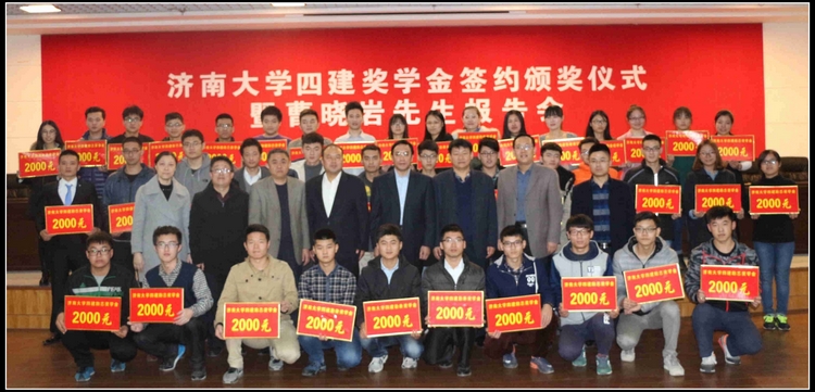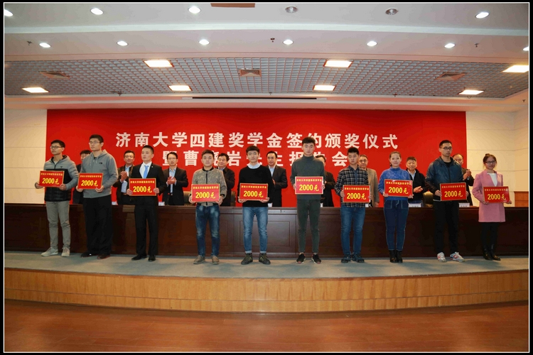 會上,首先進行了第二期“濟南大學四建獎學金”簽約儀式,并宣讀了2016年度“濟南大學四建獎學金”表彰決定。集團公司捐資80000元獎勵和資助發奮學習、品學兼優、全面發展的10名優秀學生、30名貧困學生共計40人。集團公司黨委書記、董事長曹曉巖,黨委副書記、工會主席趙吉剛在熱烈的掌聲中,為獲得“濟南大學四建勤奮獎學金、勵志獎學金”的學生頒獎。趙吉剛副書記介紹了濟南四建集團的發展概況,并對獲得四建資助的大學生提出了殷切希望。