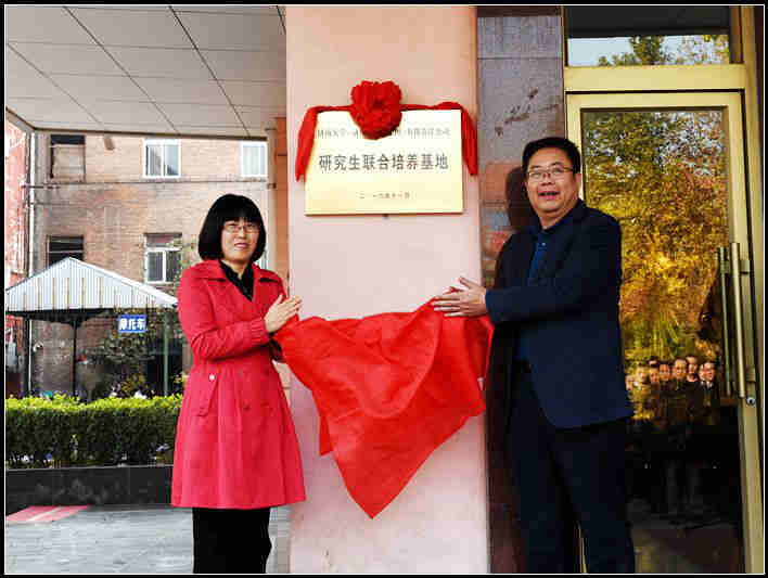最后,集團公司總經理李力同志和濟南大學研究生院副院長原雪梅同志共同為濟南大學-濟南四建集團 “研究生聯合培養基地”揭牌。