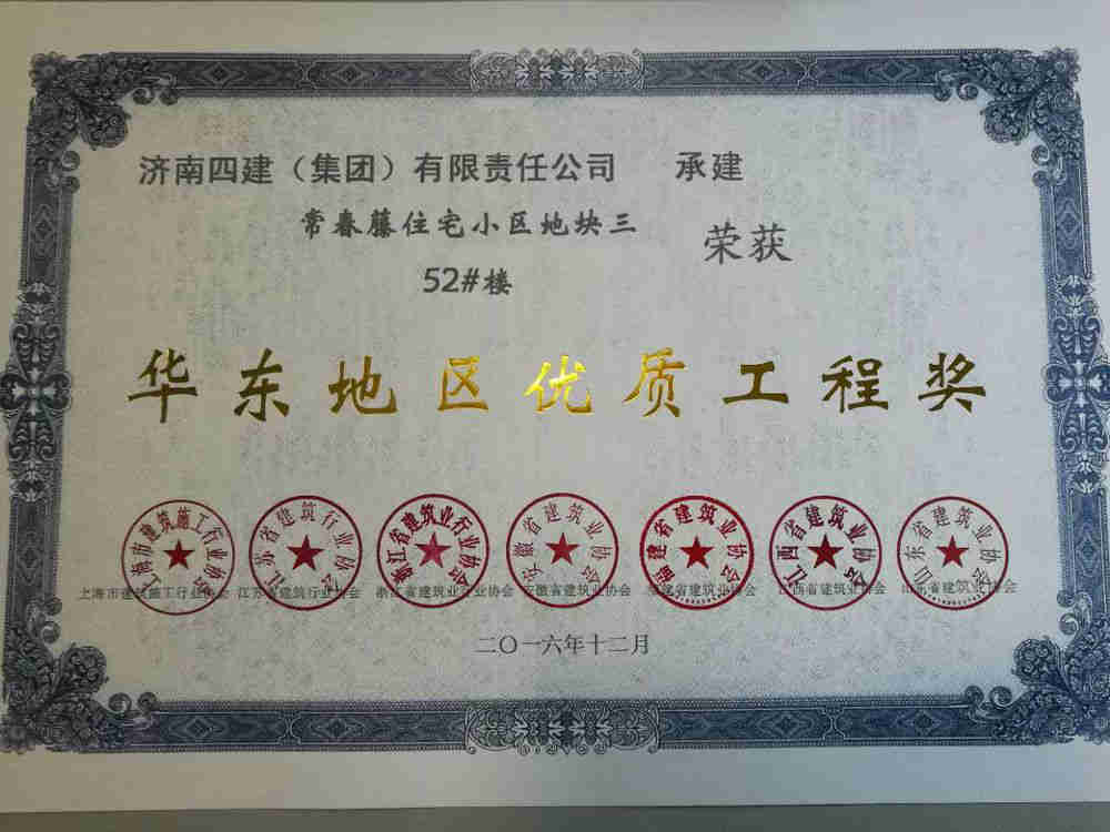 近期,由第三項目公司施工的魯商常春藤52#樓工程榮獲“華東地區優質工程獎”。“華東地區優質工程獎”是華東六省一市建設工程質量最高獎,是山東省建筑業協會在泰山杯獲獎工程中優中選優推薦申報的。在華東六省一市相當于國家優質工程級別,每年不超過100個。(今年獲獎工程為79個)。