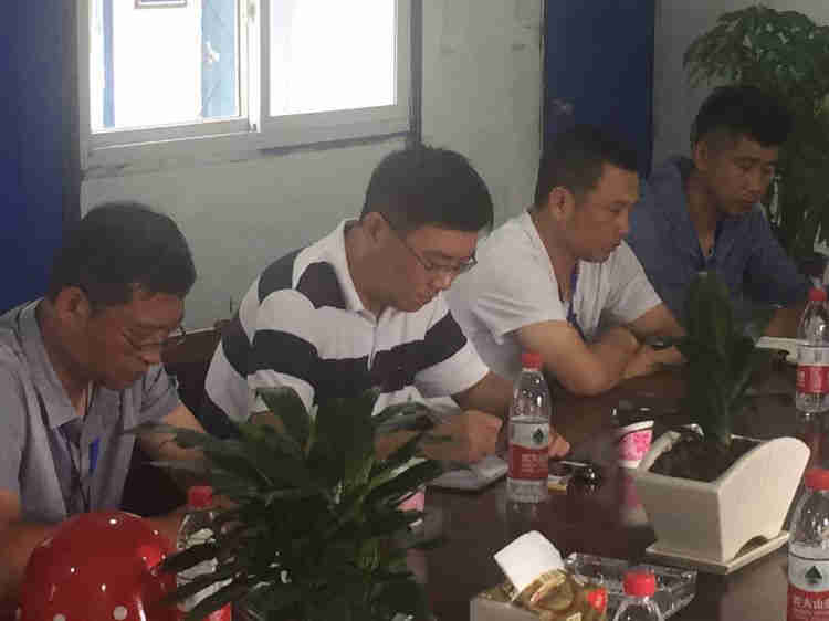 視察結束后的現場座談會上,項目經理蔣玉波就前期策劃、材料管理、勞務分包、安全生產、質量管理、計劃實施等方面情況進行了匯報。曹曉巖董事長對項目部的工作給予了肯定,并對現場管理的人員的住宿、伙食、休假等生活情況進行了細致周到的詢問。