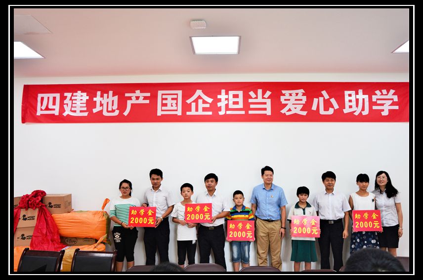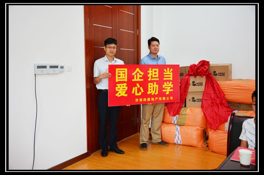 今年6月,在集團團委的大力支持下,四建金海福苑營銷中心聯合濟陽縣團委,發起了大愛助學公益活動。本次活動共募集社會愛心人士捐贈善款8850元。8月9日,四建地產兌現承諾捐出雙倍金額17700元,將愛心助學基金總計26550元在“四建金海福苑奠基暨全國青年文明號授牌儀式”上由四建地產總經理徐總移交濟陽縣團委。8月25日,由濟陽縣團委發起,濟陽縣各鎮(街道)團工委書記共同在金海福苑營銷中心將善款正式捐贈貧困學生家庭。集團團委副書記張海、四建地產員工代表共同參與了本次愛心助學捐贈活動。