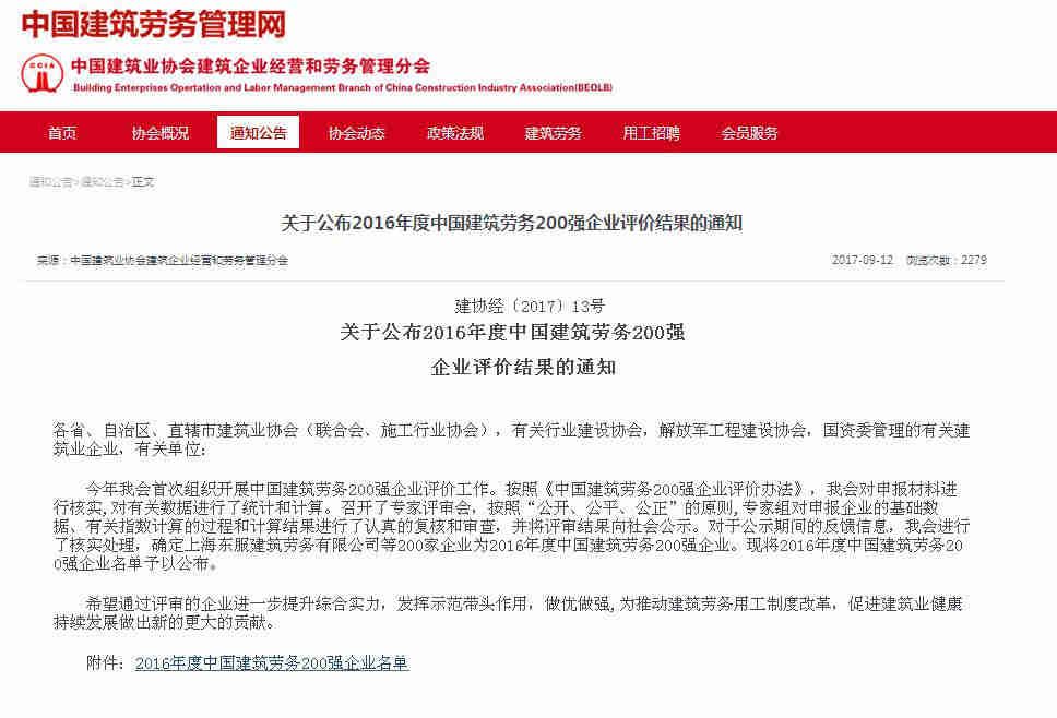 近日,中國建筑業協會公布了中國建筑勞務200強企業,眾誠勞務公司在全國7000余家勞務企業中脫穎而出進入200強,榮獲“2016年度中國建筑勞務200強企業”。標志著公司在遵紀守法、誠信經營、樹立建筑勞務企業品牌、積極培育建筑產業工人等方面取得了顯著成效。