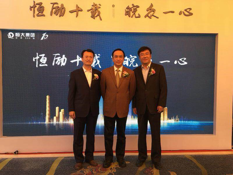 2017年10月28日14:30,集團公司黨委書記董事長曹曉巖在集團公司總經理助理江元華、401項目部經理滕厚華的陪同下,應邀在合肥參加了恒大安徽公司成立十周年“恒勵十載·皖眾一心”的慶典活動。