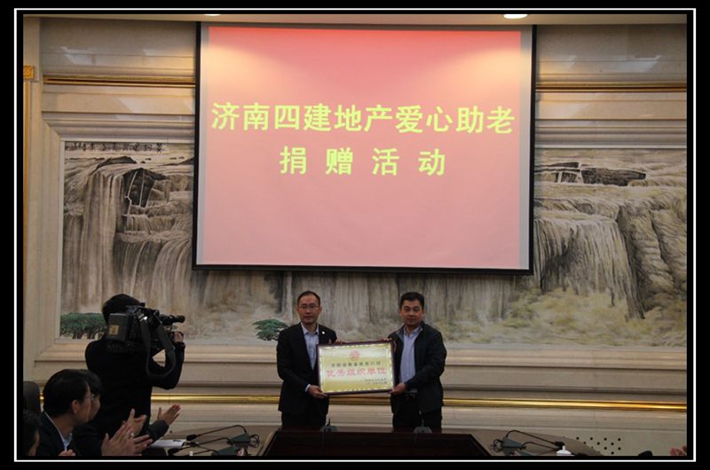 四建地產副總經理趙明首先代表公司向濟陽縣團委捐贈了115件羽絨服,并與縣團委副書記張磊同志共同向受助老人代表現場發放了羽絨服。隨后,濟陽縣太平殷橋村第一書記做了代表發言,對四建地產的善舉表達了由衷的感謝。濟陽縣副縣長謝冀松對四建地產給予了高度評價,授予四建地產“優秀組織單位”榮譽獎牌。濟陽縣委副書記黃凱東在講話中表示,四建地產一直積極響應習總書記提出的“精準扶貧”政策,多次舉辦愛心助學等公益活動,發揮了國企的帶頭作用,為全縣企業樹立了榜樣。