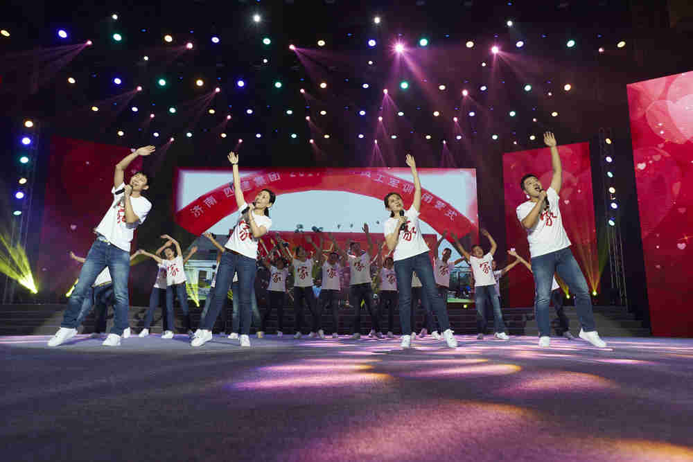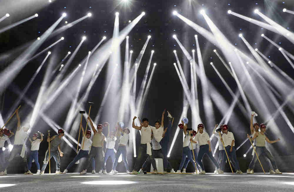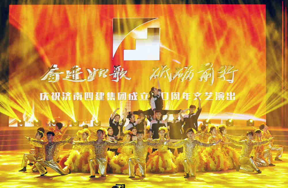職工大會之后,職工文藝演出在歡快的開場舞《盛世花開》中拉開帷幕。整臺晚會共12個節目,歷時一個半小時,演出高潮迭起、精彩紛呈。詩朗誦《四建人的足跡》、群口相聲《四建之最》、小品《特殊任務》、情景劇《跨越》,均以四建職工為原型創作,再現了四建職工決戰重點工程、榮升特級資質等真實場景,感人肺腑,引人共鳴。由四建“百人合唱團”合唱的《走進新時代》、《光榮與夢想》,展示了集團員工蓬勃向上的精神面貌,也祝福著企業美好的未來。本次文藝演出最大的亮點,是貫穿整臺晚會的節目背景--LED視頻,采自集團各單位、各崗位職工的笑臉和祝福,將現場氣氛一次次推向高潮,充分體現了職工共建、職工共享的企業文化理念。