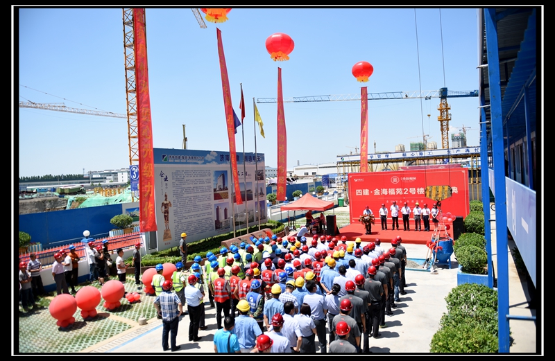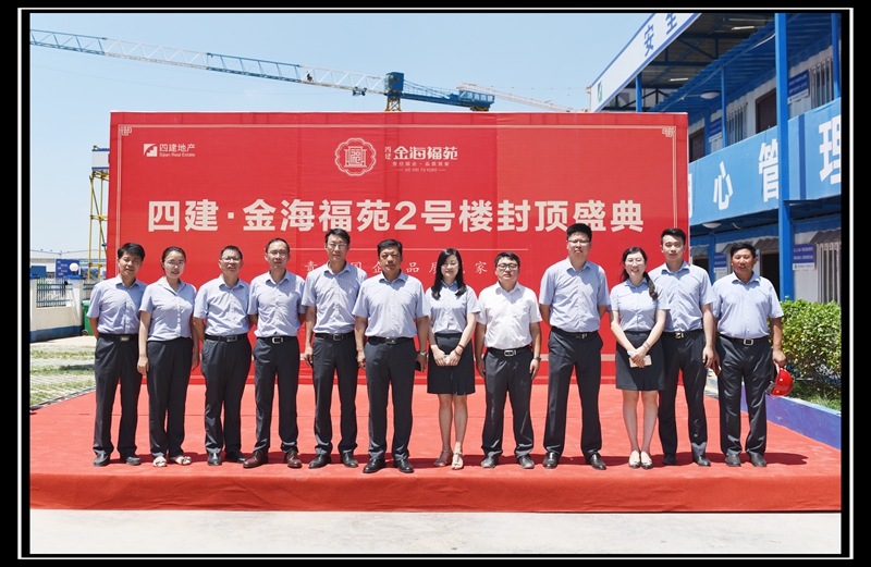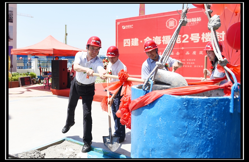 6月28日上午11:18分,四建·金海福苑2號樓工程主體結構封頂儀式在金海福苑項目工地隆重舉行。濟南四建集團黨委書記、董事長曹曉巖,副總經理詹偉,總經理助理郭志平,以及監理單位、業主代表共同出席了封頂儀式。出席儀式的還有三項目工程公司、409項目部、四建地產、萬盛物業等單位的員工代表。集團副總經理、地產總經理徐總主持了封頂儀式。