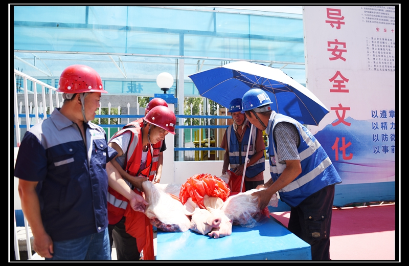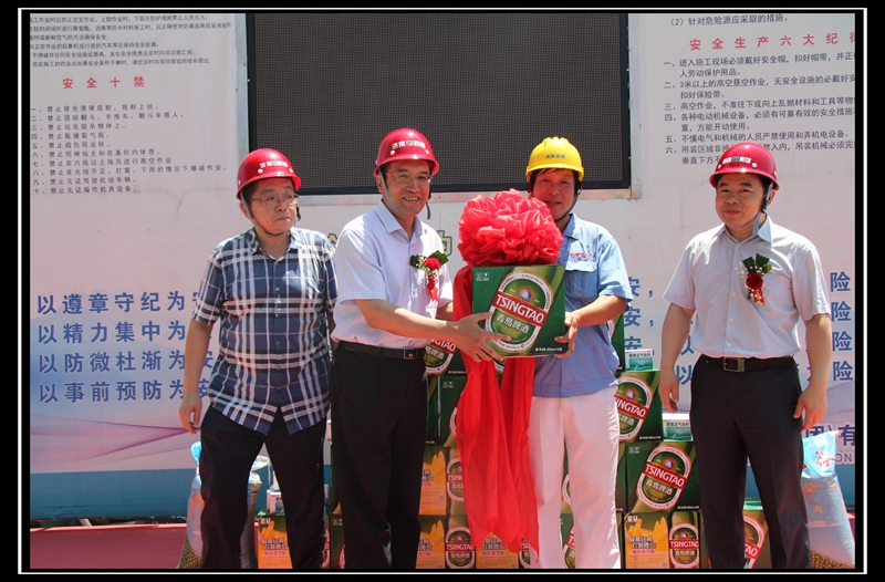 儀式結束后,曹董事長特地慰問了在炎熱天氣里辛勤勞作的工人們,給大家發放了防暑降溫的食品藥品,保障施工人員的安全生產和身體健康。