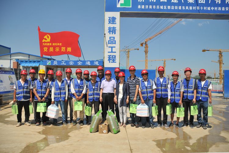 今年集團工會還針對遠在新疆、安徽、棗莊、單縣等的外地職工,撥付專款在當地購買了夏涼被、綠豆、茶葉等防暑降溫用品。為奮戰在一線的專業公司塔吊、電梯司機、攪拌車司機、木業班組等發放防暑降溫用品,實現了工會“夏送清涼”品牌活動的全覆蓋。
