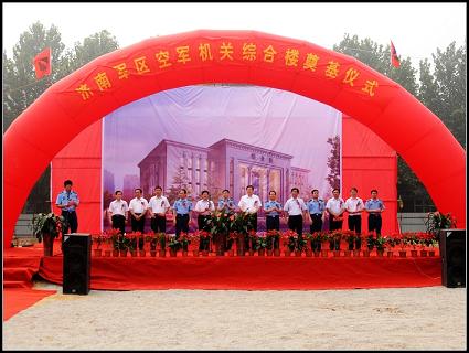 9月1日上午,在濟南空軍機關大院內,由集團425項目部承建的濟南軍區空軍機關文體中心綜合樓奠基儀式在此舉行。濟南軍區空軍政委劉紹亮、軍區空軍副司令員吳輝建、軍區空軍副政委嚴寶發,濟南市市委副書記、市長張建國、市委常委、常務副市長王良、市城鄉建設委主任田莊、市城鄉建設委副主任、西區投融資管理中心主任王迪生,集團公司董事長、黨委書記、總經理曹曉巖、副總經理劉俊清等領導出席了奠基儀式。