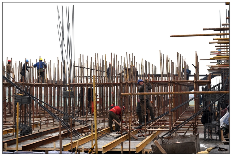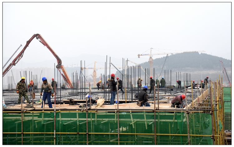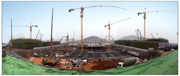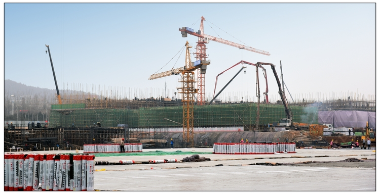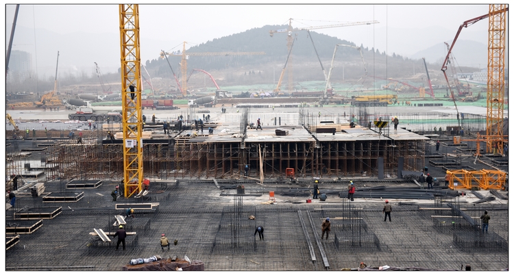 在短短15天的時間里,現場施工人員達到1200余人,大型機械已安裝完成5臺塔吊,7臺汽車吊,挖掘機、鏟車等重型機械20余臺;1號、2號辦公樓結構施工至二層,基槽渣土回填、強夯地基處理渣土已完成15萬立方,車庫基礎筏板施工完成60%,局部地下二層結構施工;完成混凝土澆筑約1.6萬立方,綁扎鋼筋2300噸,鋼管100萬米,模板10萬平方米。集團公司承建的區域在與中建一局、中建八局同場競爭中,遙遙領先。