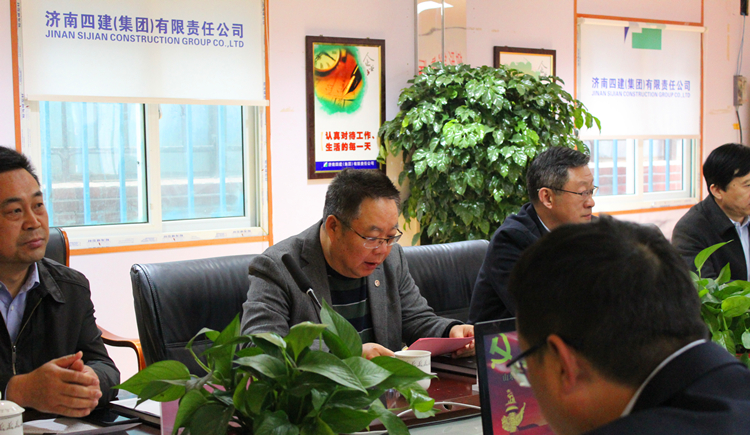 會議第二項,集團黨委副書記、總經理李力講話。李總首先代表濟南四建集團黨委對臨時黨支部的成立表示衷心的祝賀!李總指出,回顧四建集團與山東交通學院的“校企合作”,可謂源遠流長。多年來,雙方本著“合作共贏、攜手共進”的原則,“交院人精神”與“四建人精神”相知相融,優勢互補、深入交流,取得了豐碩的成果。特別近年來,我們緊緊圍繞建筑行業特點,充分發揮企業特有的黨建工作優勢,以“支部建在項目上”為抓手,堅持把“項目黨建”作為重點,把重心和注意力轉移到工程項目和施工現場上,積極探索“項目+黨建”的黨組織工作新路徑,新方法,不斷深化工程項目建設與黨建工作的融合發展,實現了工程建設與黨組織活動節奏合拍,同頻共振。交通機電實驗實訓樓項目作為四建集團今年的重點項目,集團公司領導、各參加單位始終高度重視。共同成立以項目為單位的“臨時黨支部”,這是該項目建設上的一件大事。“臨時黨支部”的成立,有利于集團與學院、黨建工作與項目建設,有機統籌、深度融合、始終貫穿,通過充分發揮黨的領導核心作用、黨支部的戰斗堡壘作用和黨員的先鋒模范作用,進一步推進項目建設,以黨建“軟實力”激發項目建設新動能。最后,李總預祝臨時黨支部工作卓有成效,項目建設圓滿成功!祝愿四建集團與交通學院友誼長存、更進一步!