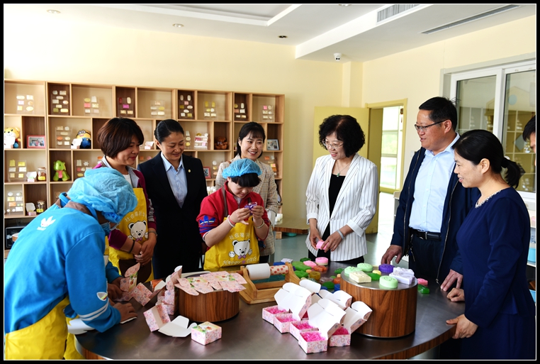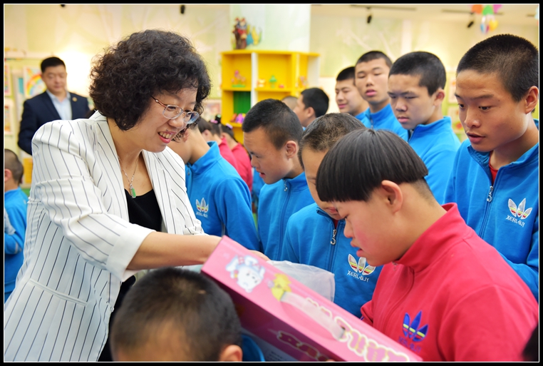 濟南市兒童福利院收養的大多是無家可歸、無依無靠、無生活來源的孤殘兒童、社會棄嬰和流浪憨傻癡呆兒童,全院現有收養孤殘兒童600余名,兒童殘疾率達到98%。走進福利院,大家首先來到孩子們身邊,對孩子們的生活環境、學習狀況等進行了詳細了解,并為孩子們送上運動鞋、毛巾被、書包等生活學習用品。看到叔叔阿姨來看望他們,孩子們用熱烈的掌聲歡迎叔叔阿姨的到來,并且開心地為大家展示烘焙、插花、制皂等手工技能,抱著叔叔阿姨帶來的新鞋子、新書包,孩子們臉上洋溢著幸福的笑容。