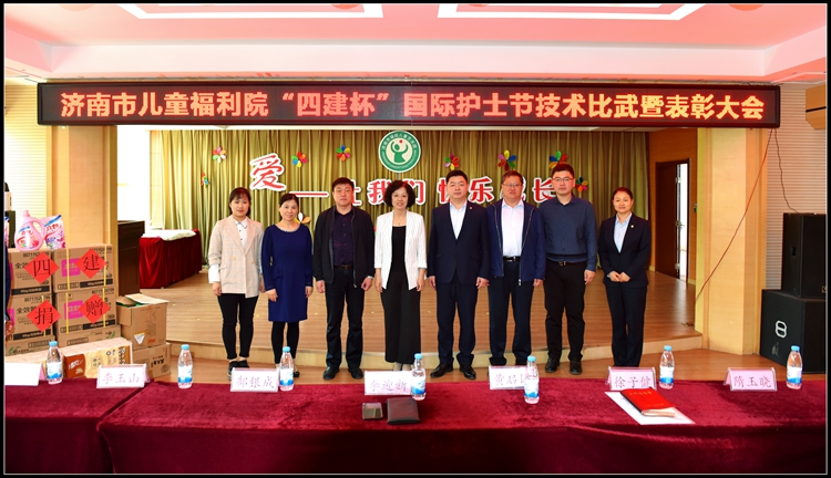 5月9日上午,集團公司工會、團委走進濟南市兒童福利院,看望慰問福利院的孤殘兒童,為孩子們送去了毛巾被、運動鞋、書包等生活學習用品,并召開了濟南市兒童福利院“四建杯”國際護士節技術比武暨表彰大會,對技術比武中獲得優異成績的先進護理工作者進行了表彰獎勵,為廣大護理工作者送上了節日禮品。濟南市民政局副局長郜銀成、工會主席李玉山、機關黨委副書記黃啟國、集團公司工會副主席李迎新、團委副書記隋玉曉、組宣處副處長張延華以及部分基層單位黨支部副書記、團支部書記等參加活動。