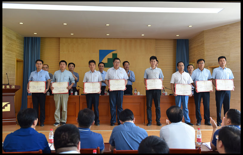 會議由邢總主持。首先詹總宣讀了對2018年度質量工作創優良單位的獎勵和對未完成質量目標單位的處罰決定,以及在創優工作中做出突出貢獻的先進個人的表彰決定,并對獲獎單位和個人進行了頒獎。隨后史總宣讀了《關于聘任濟南四建集團第三批質量工程師的決定》,并為胡海英等第三批六位質量工程師發放了聘書。