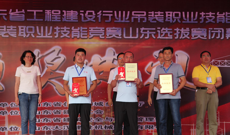 經過激烈的角逐,“大漢杯”山東省工程建設行業吊裝職業技能決賽暨2019全國競賽山東選拔賽圓滿閉幕。16支參賽隊75名專業選手通過理論考試和實操比武,山東濟南市代表隊摘得技能競賽團體獎第一名。來自我公司的劉順卿從參賽的眾多塔機頂尖高手脫穎而出,憑借精湛的技術和穩定的臨場發揮,以總分第二的佳績榮獲二等獎;我公司的另一名參賽選手付廣恩也以總分第六的好成績獲得了三等獎。