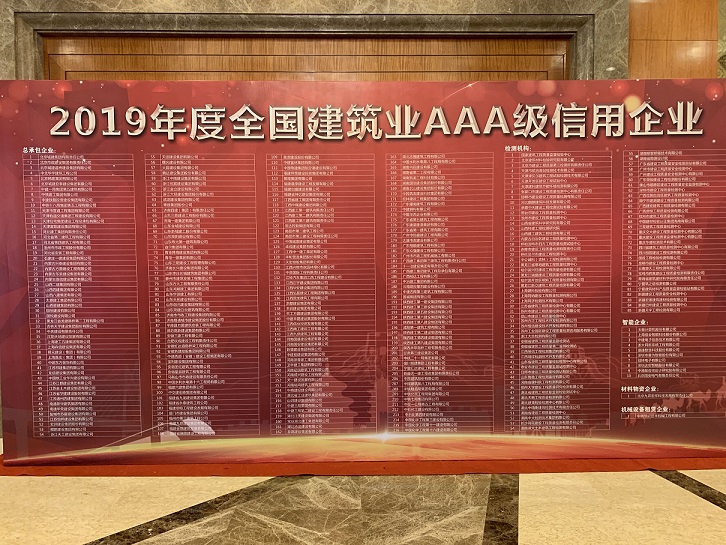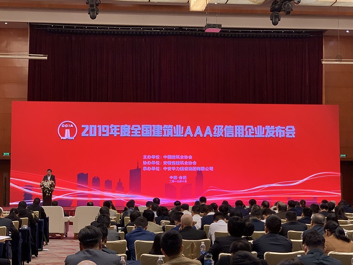 10月31日,在合肥召開的“2019年全國建筑業AAA級信用企業發布會”上,集團公司被評為“2019年度全國建筑業AAA級信用企業”,位列313家獲評企業的第65位。