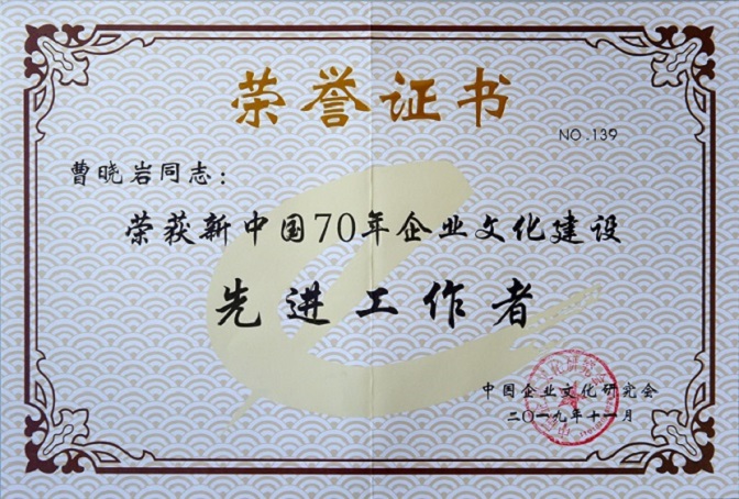 11月16日—18日,在中國企業文化研究會主辦的“中外企業文化2019合肥峰會”上,集團公司榮獲“新中國70年企業文化建設優秀單位”,集團黨委書記、董事長曹曉巖同志榮獲“新中國70年企業文化建設先進工作者”榮譽稱號。