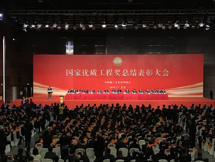 2019年12月8日,2019年國家優質工程獎表彰大會在北京國家會議中心隆重召開。由集團公司第四工程項目公司承建的恒大帝景房地產開發項目(商業地塊)9#樓工程獲此殊榮。集團公司董事長、黨委書記曹曉巖,集團公司總經理助理謝愛濱,集團技術質量部長趙得銘到會參加授獎儀式。