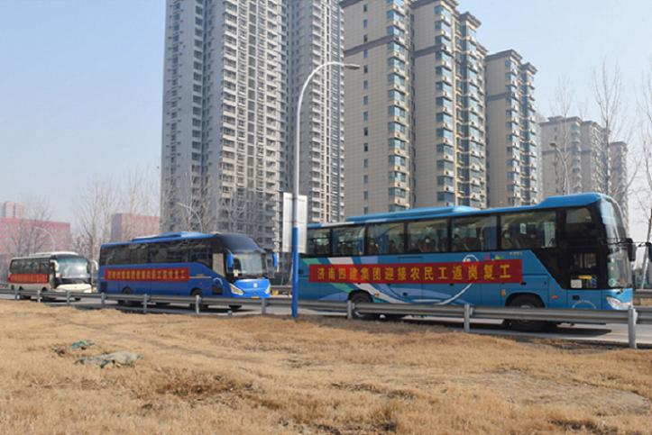 2月20日上午10時,由集團公司派出的首批載有69名省內農民工的三輛大巴車安全駛進濟陽金海福苑工地,拉開了集團公司迎接農民工返濟復工的序幕。