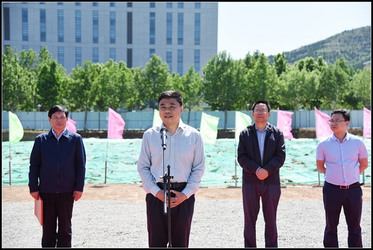隨后,參加儀式的領導共同為山東師范大學教學實驗綜合樓項目奠基培土。儀式后,集團公司李總與邢校長就項目建設施工情況及校企合作方面進行了親切交流。
