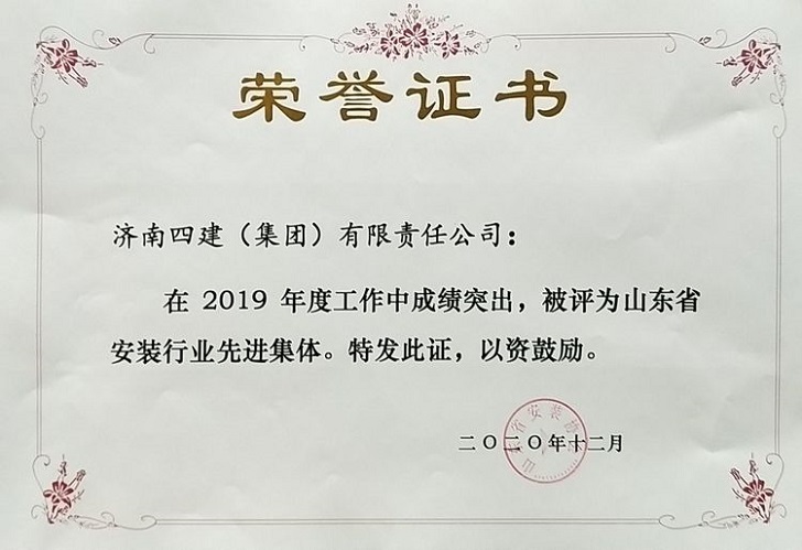 1.濟南四建(集團)有限責任公司榮獲“山東省安裝行業先進集體”。