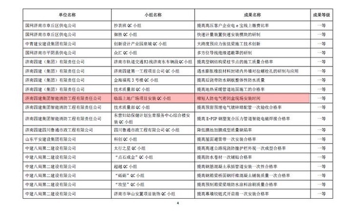 12月15日,臨淄上地廣場項目安裝QC小組編寫的“降低人防電氣密閉盒現場安裝時間”的成果獲得山東省安裝協會2020年度山東群眾性質量管理活動先進活動一等獎。