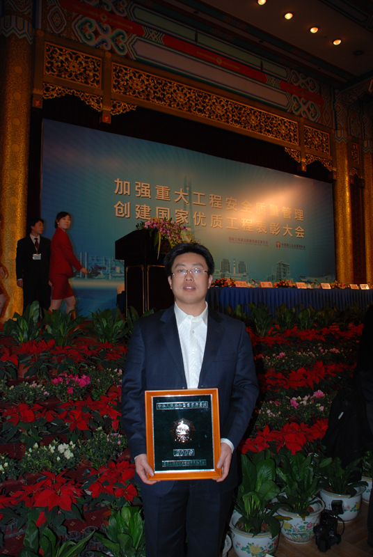 我公司428項目部和安裝總公司承建的山東太古三期維修機庫及附屬工程獲得了2009年度的國家優質工程獎,同時參建單位,我公司的智能消防工程有限責任公司和山東國宸裝飾工程有限公司也同時獲獎。國家優質工程獎是經國務院批準的工程建設領域國家級質量獎,經過公司各部門和單位的共同努力,我公司首次獲得了該獎項,為公司再次贏得了榮譽。公司總工程師邢慶毅,副總工程師趙得銘,項目經理劉永強,安裝總公司經理葛軍代表公司領了獎。