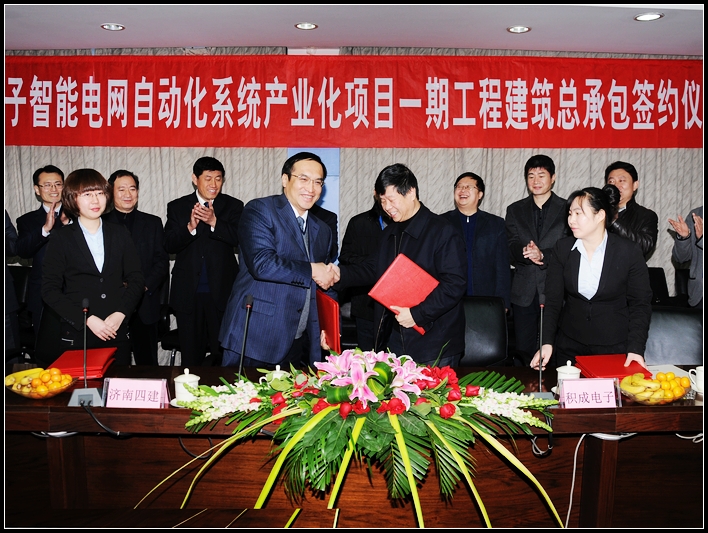 12月19日上午,由集團公司426項目部承建的“積成電子智能電網自動化系統產業化項目一期工程”簽約儀式在積成電子股份有限公司舉行。集團公司董事長、黨委書記、總經理曹曉巖,黨委副書記、監事會主席張沛云,副總經理崔安遠、辦公室主任蘭利孝、經營處處長江元華、426項目經理周廣成參加。積成電子股份有限公司董事長楊志強、監事會主席王浩、副董事長嚴中華、副總經理馮東、姚斌等領導出席了簽約儀式。